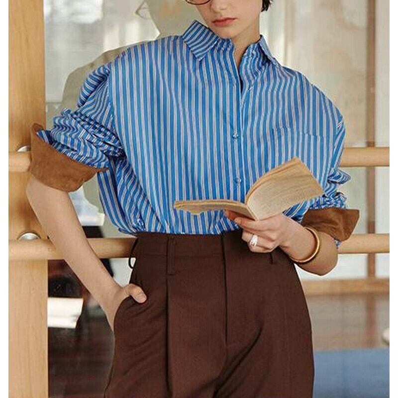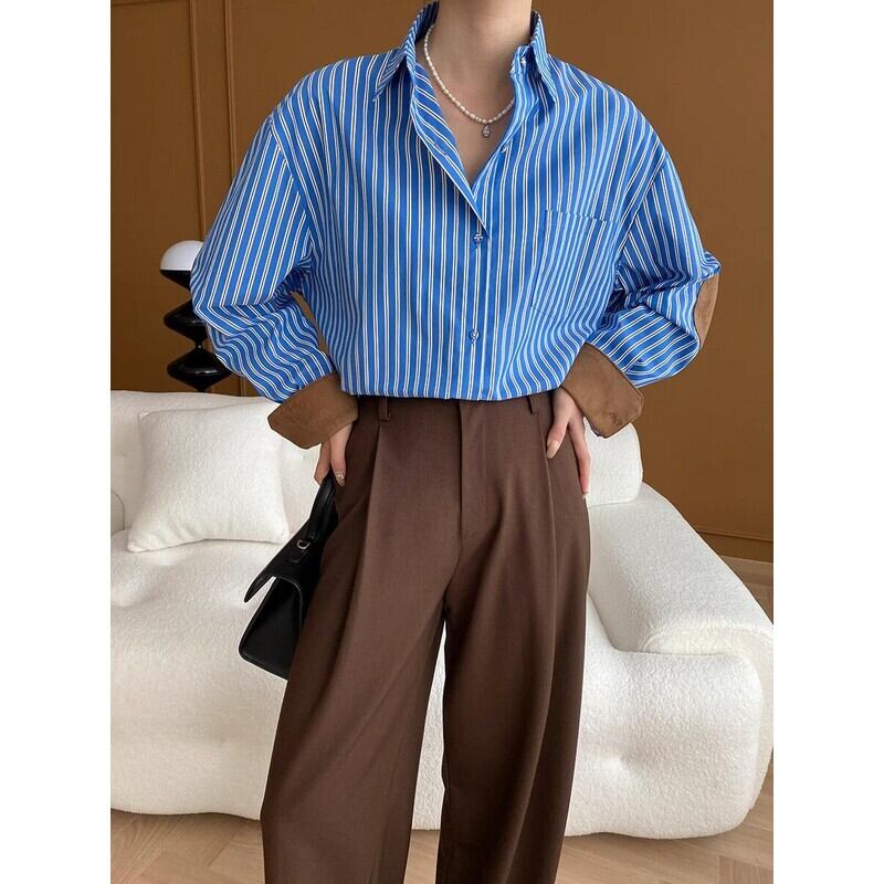 suede patchwork overstripe shirt