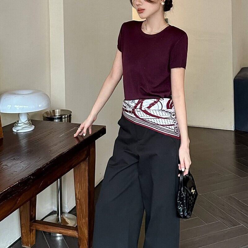 Short-sleeved knit with scarf
