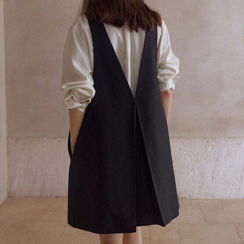 Pocket A-line Silk Wool V-neck Vest one piece