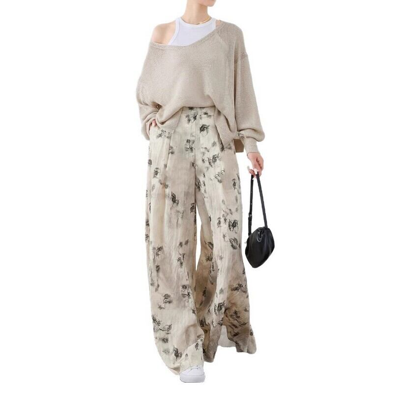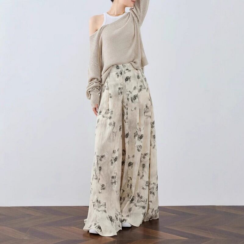 High-waisted art flower draped pants