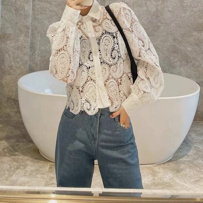 paisleyデザインが施されたボトミングシャツは、シンプルながらも華やかな印象を与えます。