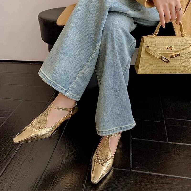 french retro hollow woven pointed flat shoes