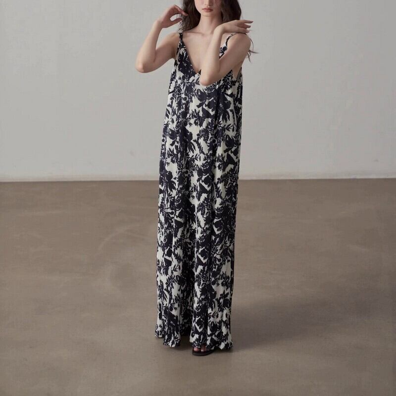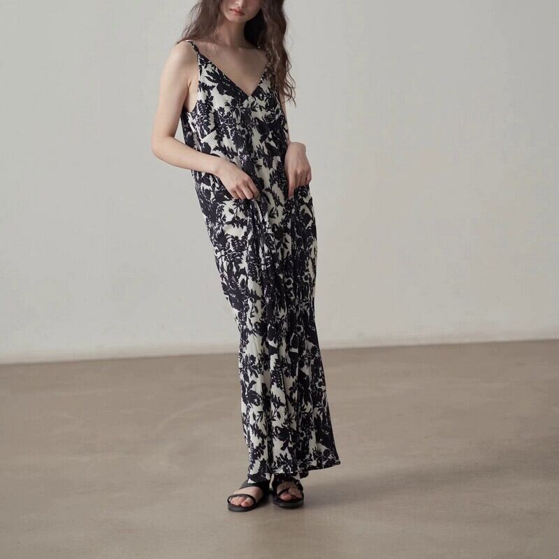 優雅なプリーツデザインが特徴のマキシ丈ドレス。軽やかな素材が身体に優しくフィットし、リラックス感あふれる着心地です。シワになりにくい素材を使用している為、旅行シーンやお出かけにもぴったりなアイテムです。